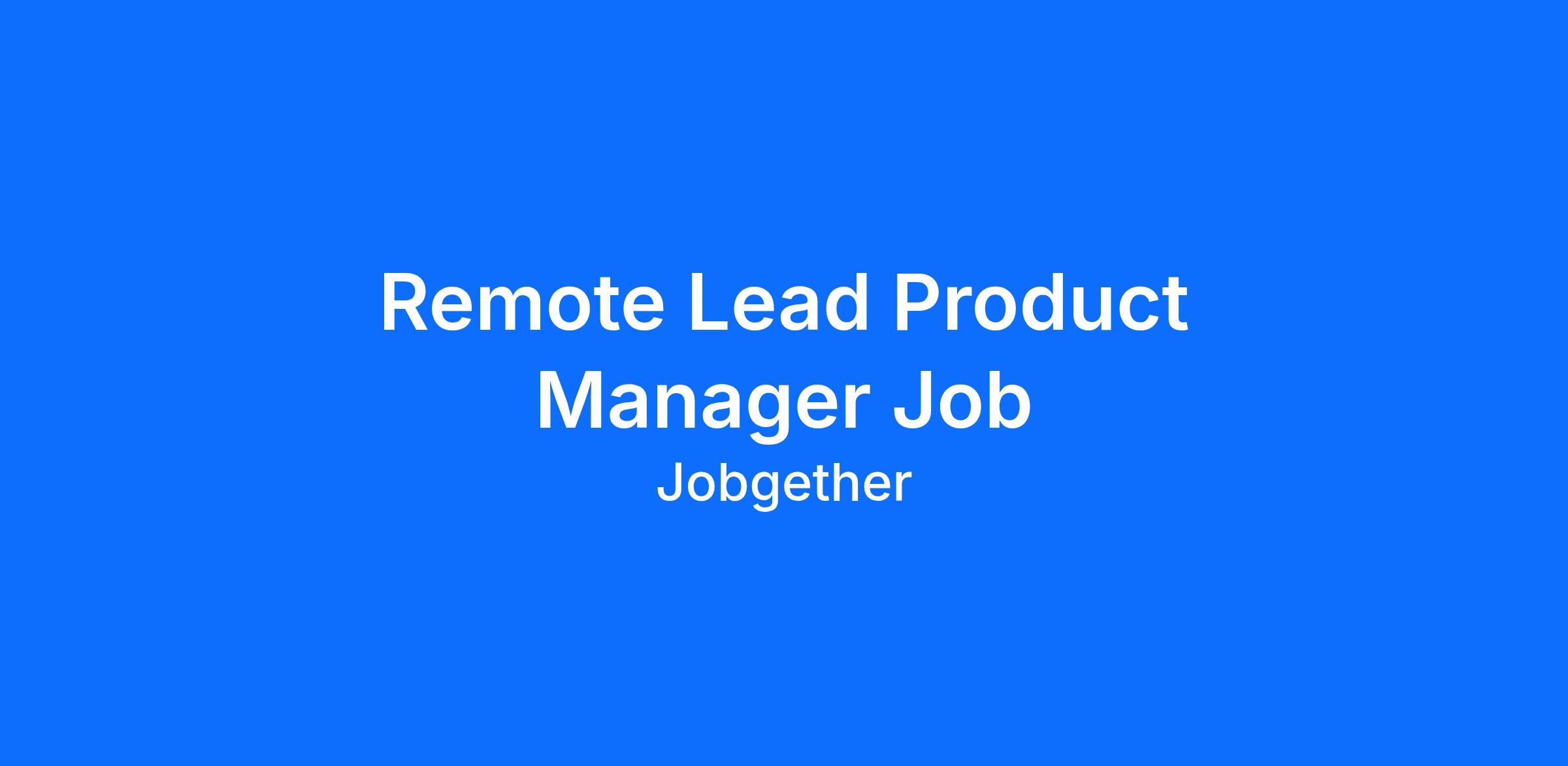 Remote Lead Product Manager Job