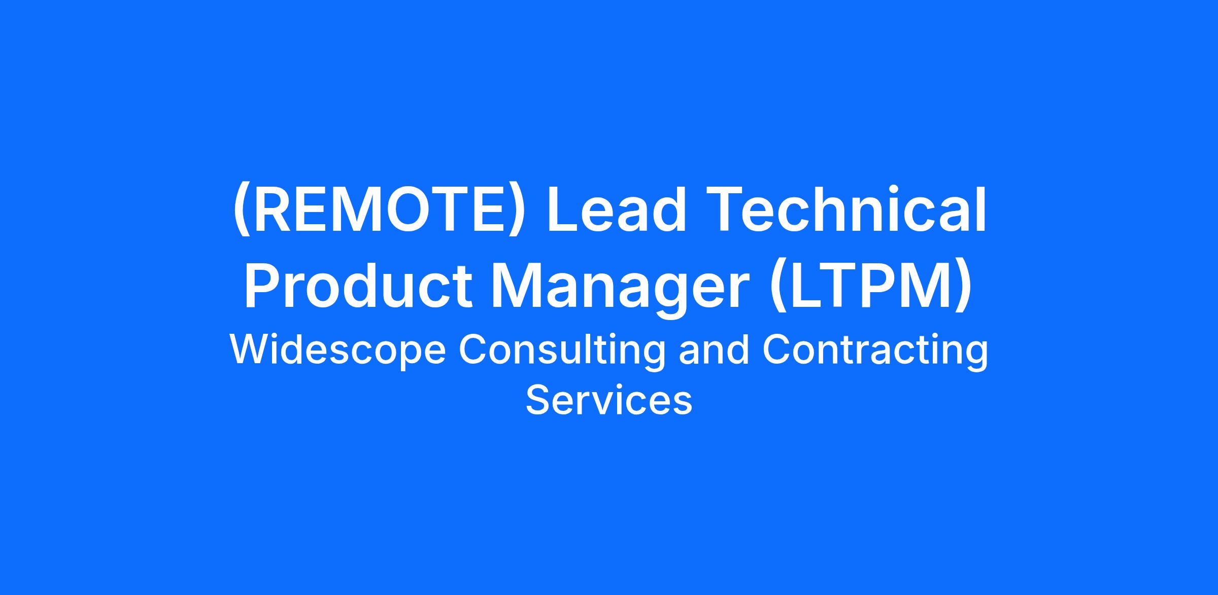 Job Title: Lead Technical Product Manager (LTPM)