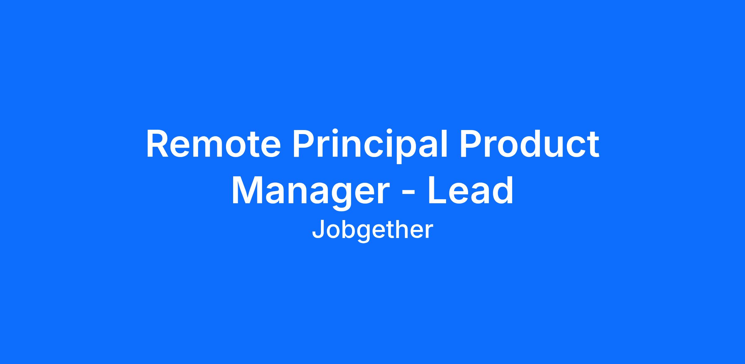 Remote Principal Product Manager - Lead