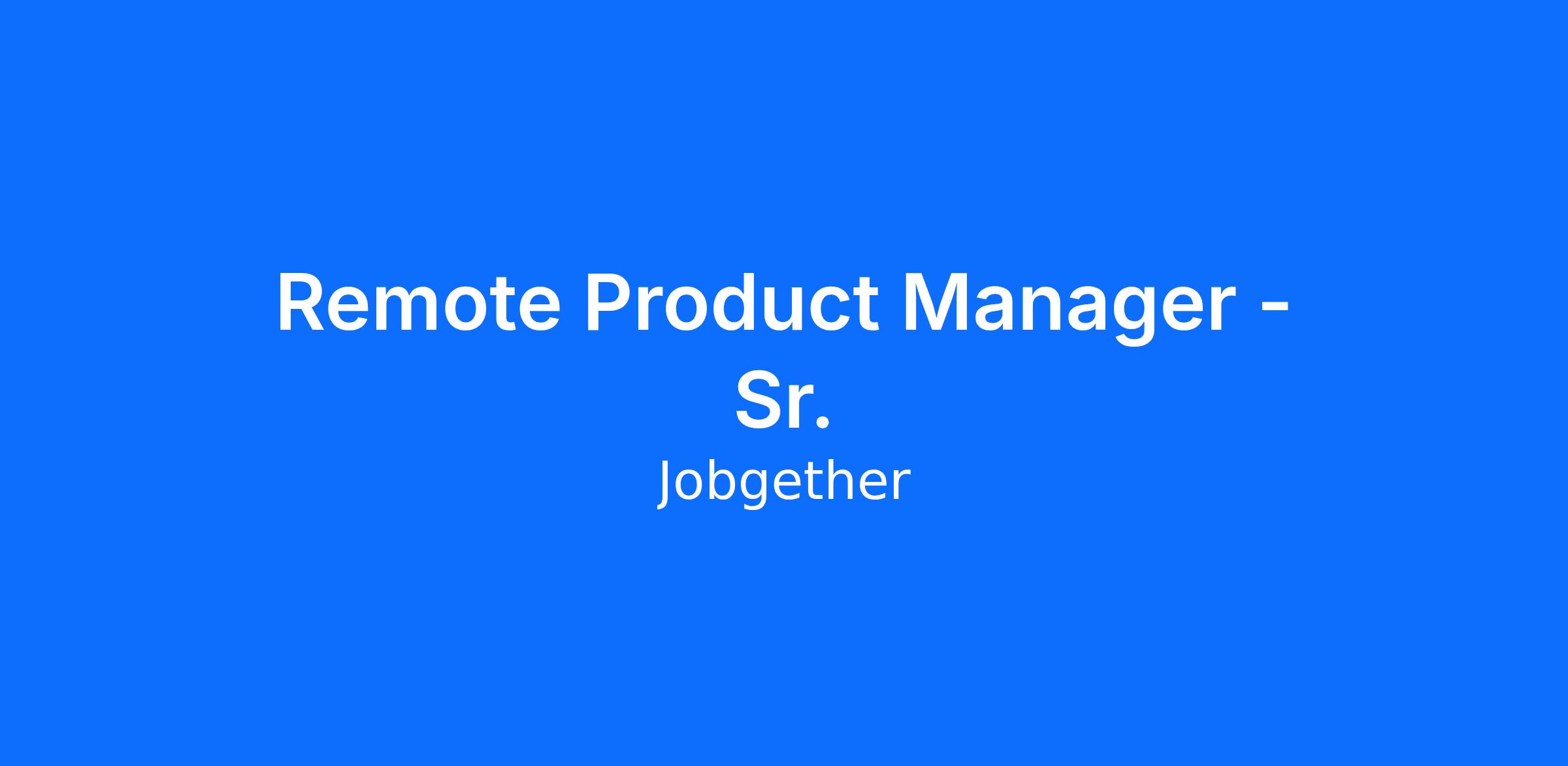 Remote Product Manager - Sr.