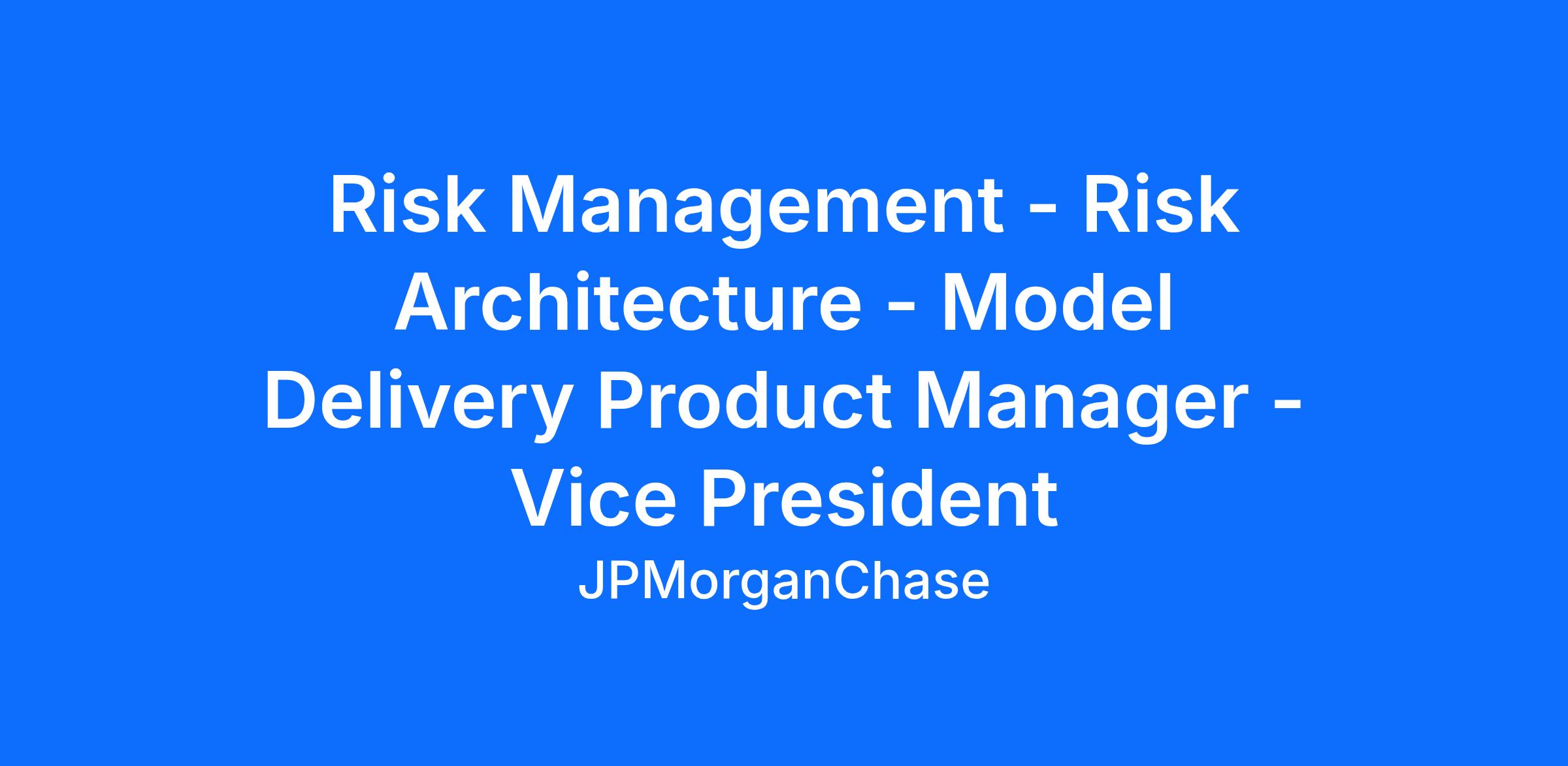 Risk Management - Risk Architecture - Model Delivery Product Manager - Vice President
