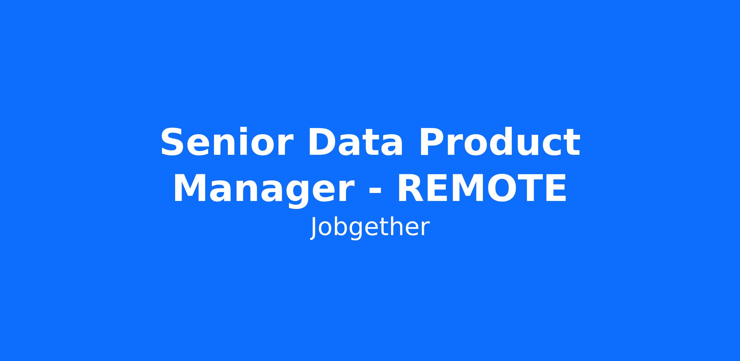 Senior Data Product Manager - REMOTE