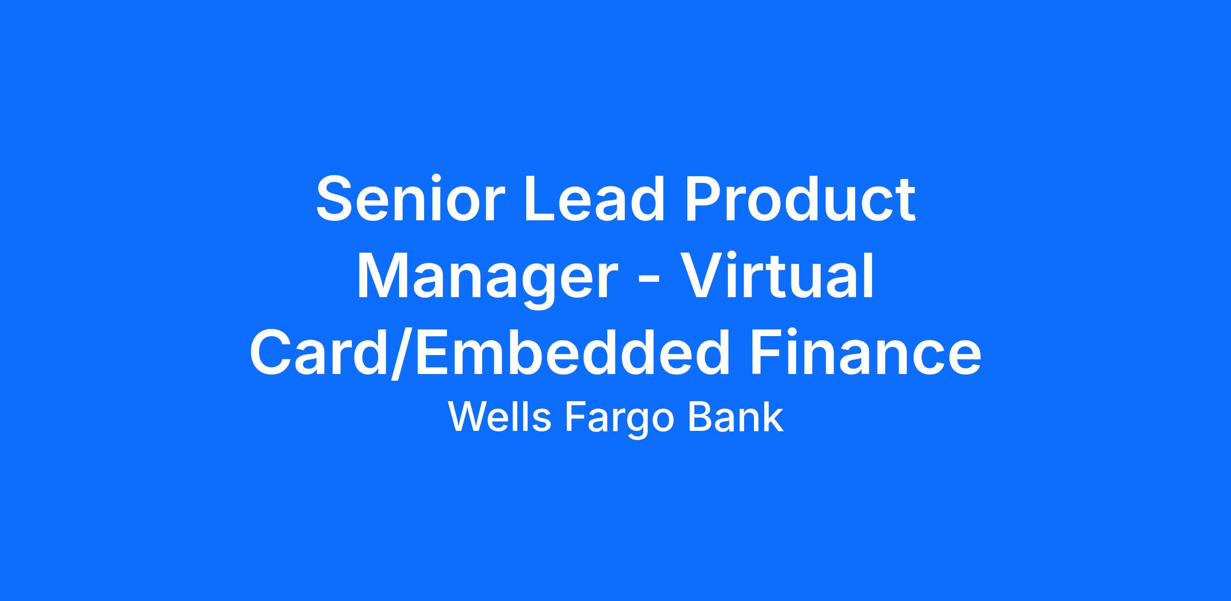 Wells Fargo is seeking a strategic, forward-thinking, and results-driven Senior Lead Product Manager to lead the Virtual Card/Embedded Finance Product. Reporting to the Head of Commercial Card Product Management, this critical role is responsible for delivering accelerated bottom-line impact in the fastest-growing area in commercial payments.