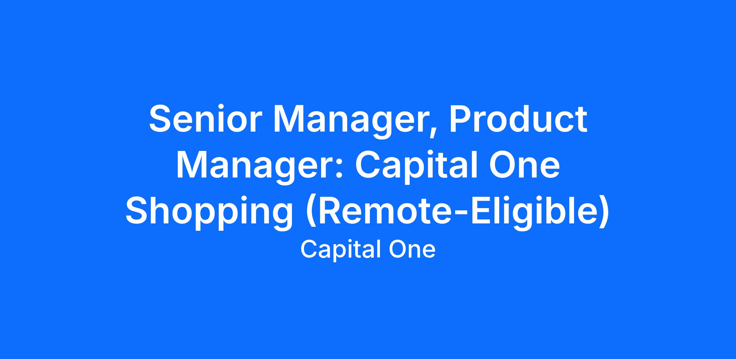 We are looking for a Product Manager to join our growing team in Capital One Shopping. If you have a remarkable ability to use data to tell a story, form a hypothesis and define metrics to identify the success of product initiatives - this is the role for you!