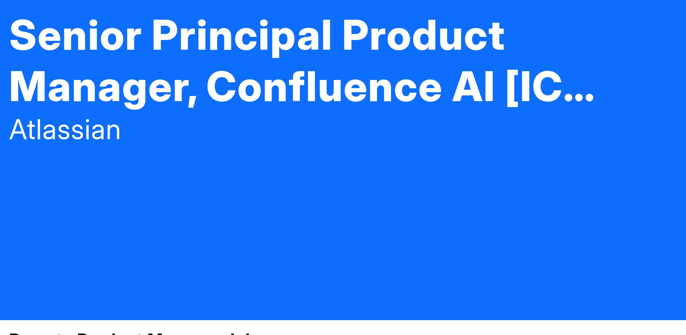 As a Senior Principal Product Manager on the AI team for our Confluence product, you drive the development and integration of cutting-edge AI technologies into Confluence, empowering our users to work smarter, more efficiently, and more collaboratively. You will report to Head of Product and your customers are end users as well as internal feature teams who will leverage your work to implement AI at scale.