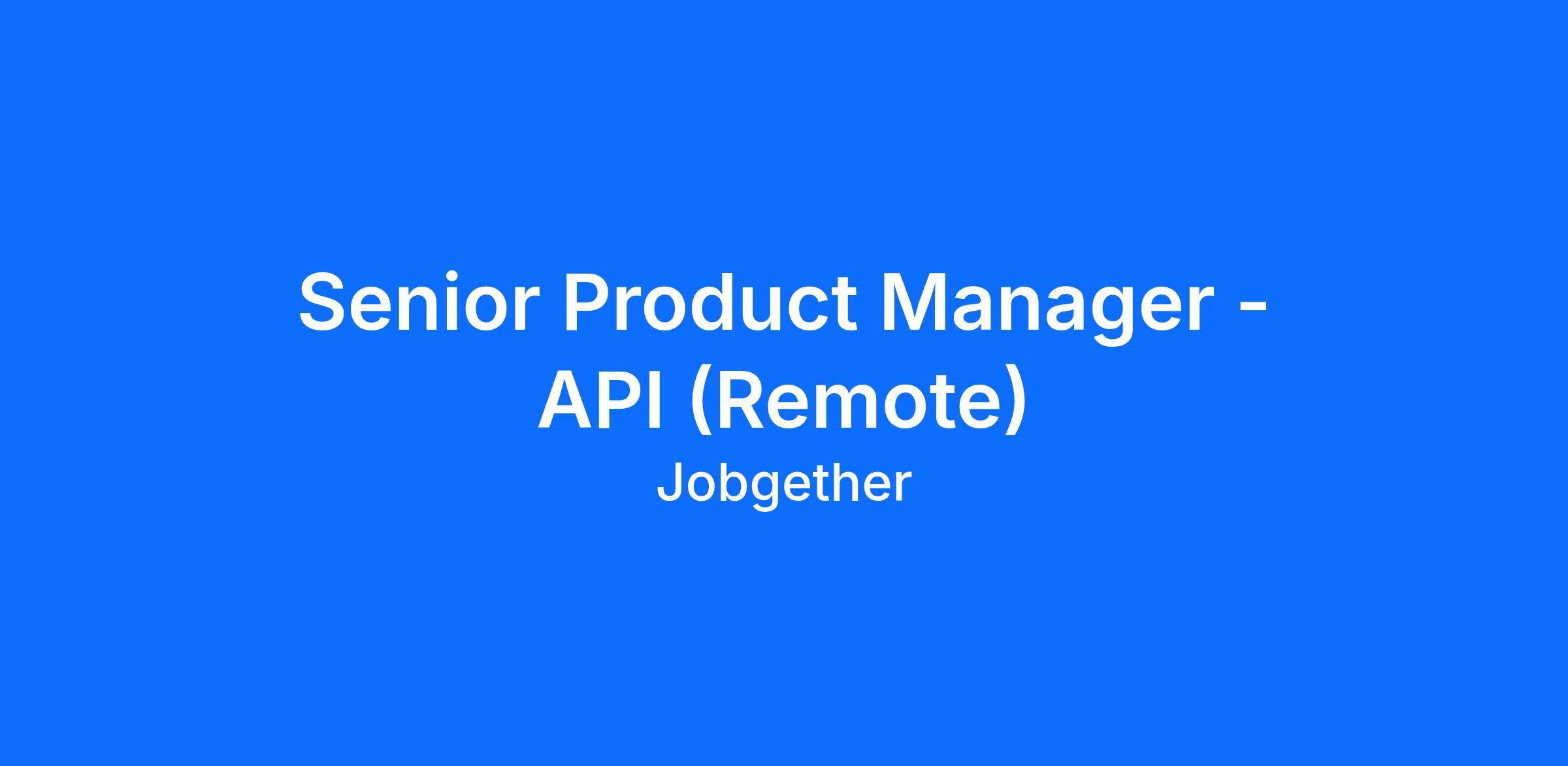 Senior Product Manager - API (Remote)