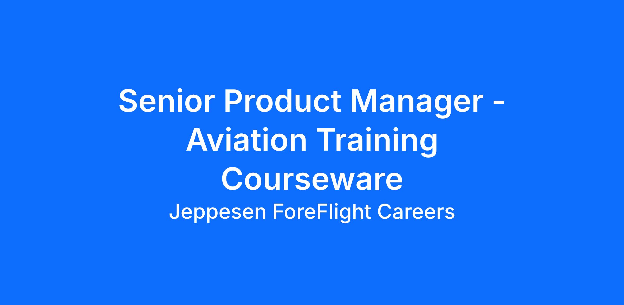 Jeppesen ForeFlight is looking for an outgoing and hardworking Senior Product Manager - Aviation Training Courseware to join their Flight Services portfolio team. This individual will research, plan, organize, and manage the day-to-day of an assigned product line from concept through product life cycles in order to optimize profit and meet marketing, financial, and growth objectives. The ideal candidate should possess a background in aviation flight training and have knowledge of technologies/domains such as learning management systems, aviation training curriculum, instructional design, and the FAA Flight Training Standards. The ideal candidate should also have experience with Part 61 and Part 141 flight school operations and FAA Training Course Outline (TCO) approvals. This role will be Hybrid from Englewood CO.