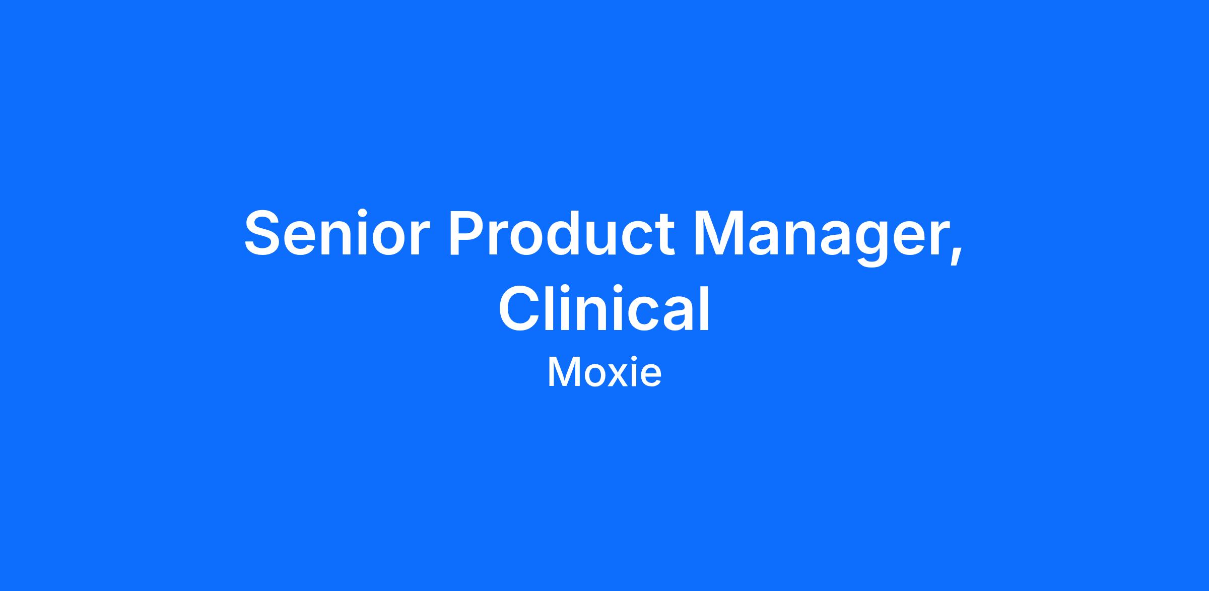 Own something foundational at a company with real momentum – this is our first Clinical PM role, which means you're defining Moxie's identity as a clinical platform rather than inheriting someone else's roadmap