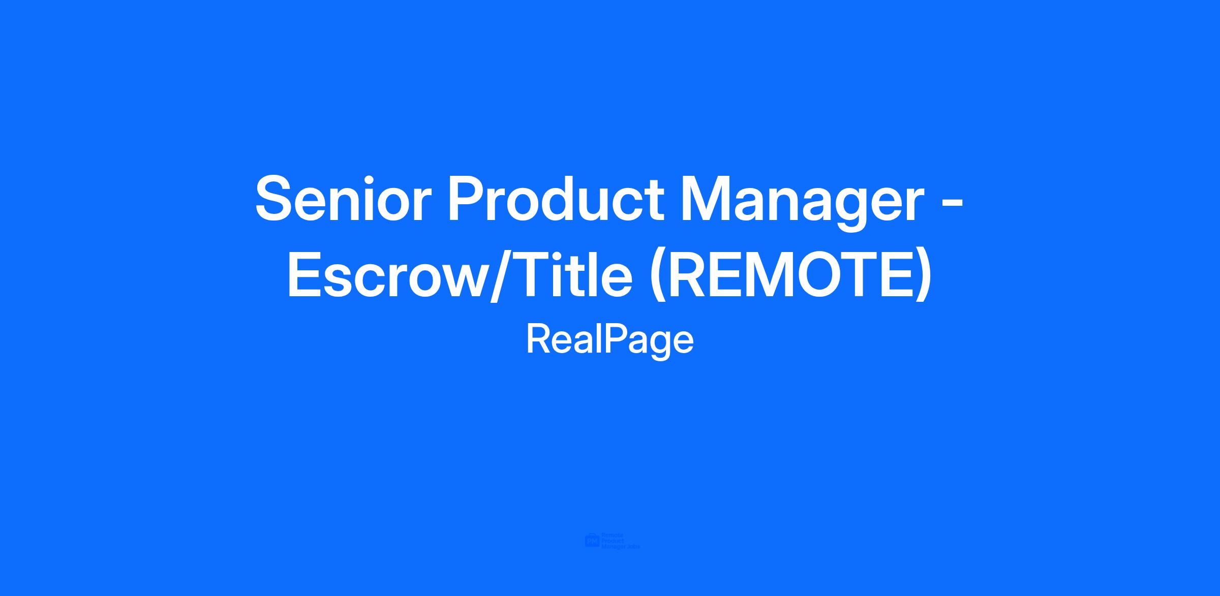 Senior Product Manager - Escrow/Title (REMOTE)