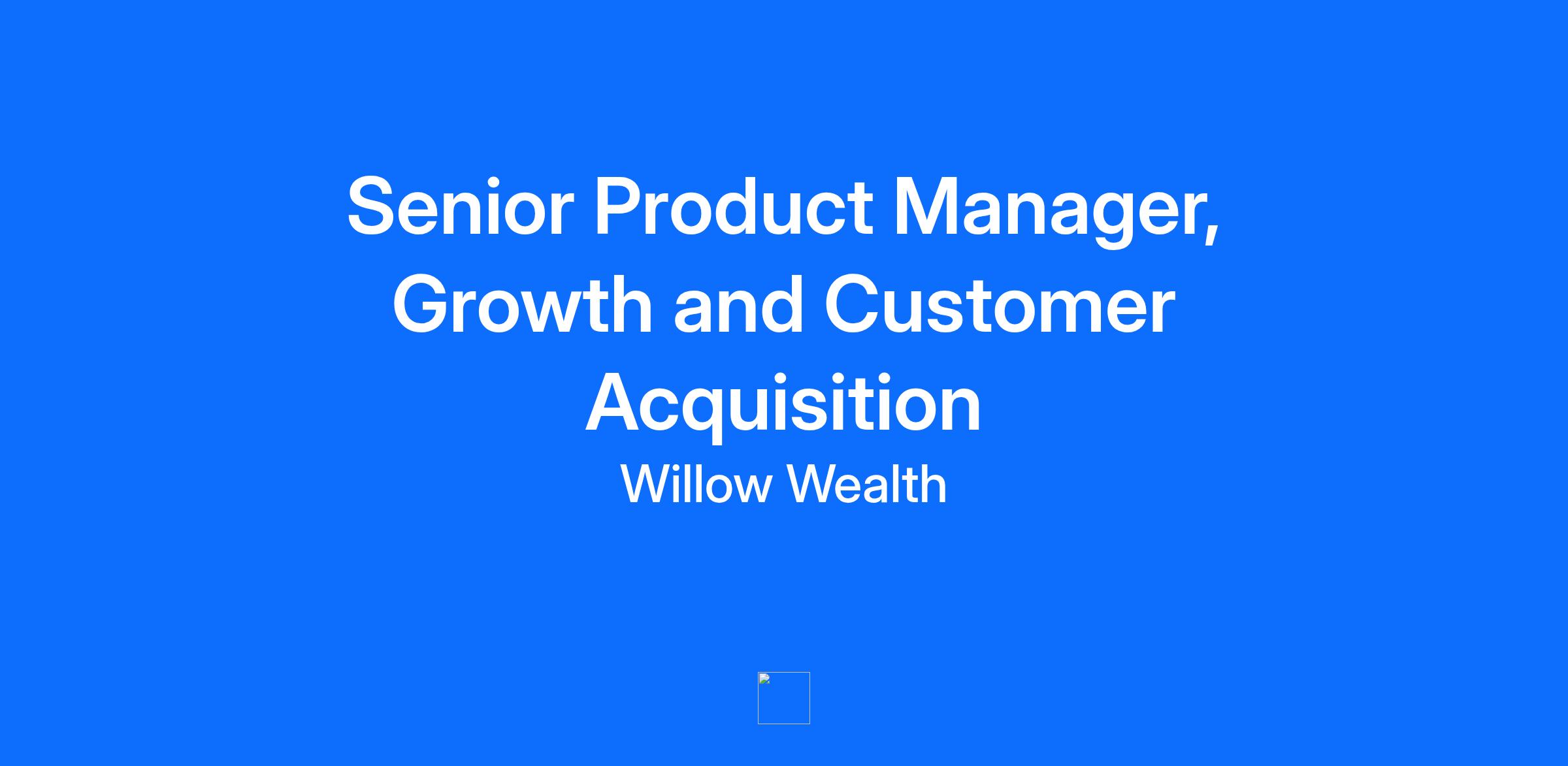 Willow Wealth is looking for a Senior Product Manager focused on Growth and Customer Acquisition to accelerate our top-of-funnel conversion and enhance our first-time investor experience. In this role, you will be responsible for driving the product strategy and execution that enables new customers to confidently make their first investment. You’ll report to a Director of Product and will partner closely with Marketing, Design, Engineering, Data, Customer Support, and Operations.