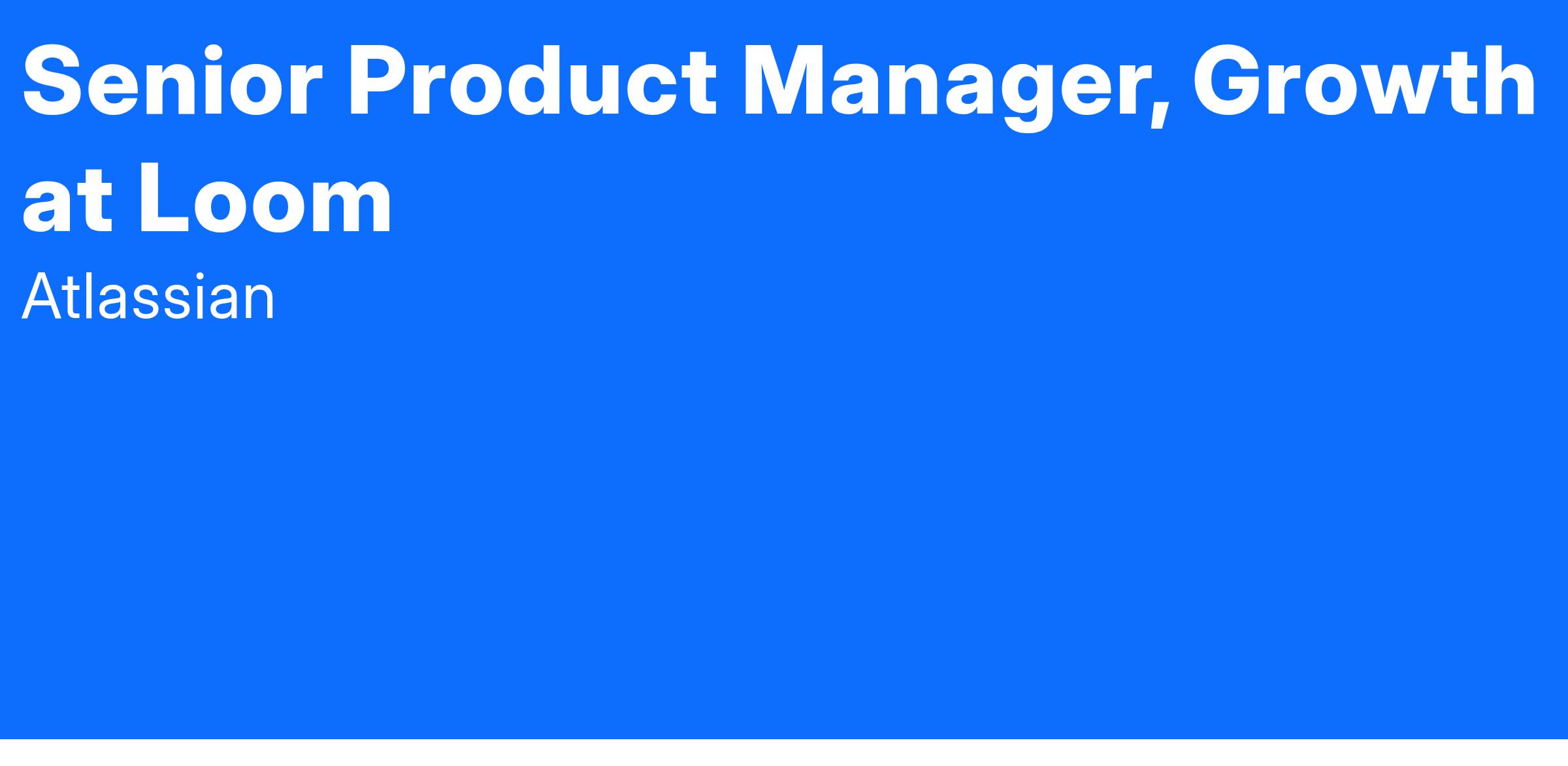Loom is looking for a Senior PM who will drive one of the company's most important goals — accelerating and inflecting Loom's growth. The Growth PM's mission is to expand the network of people who use async video at work. We're changing behavior for people at work by introducing a new mode of communication, and your job is to help users understand how async video can make their communication more effective, efficient, and engaging.