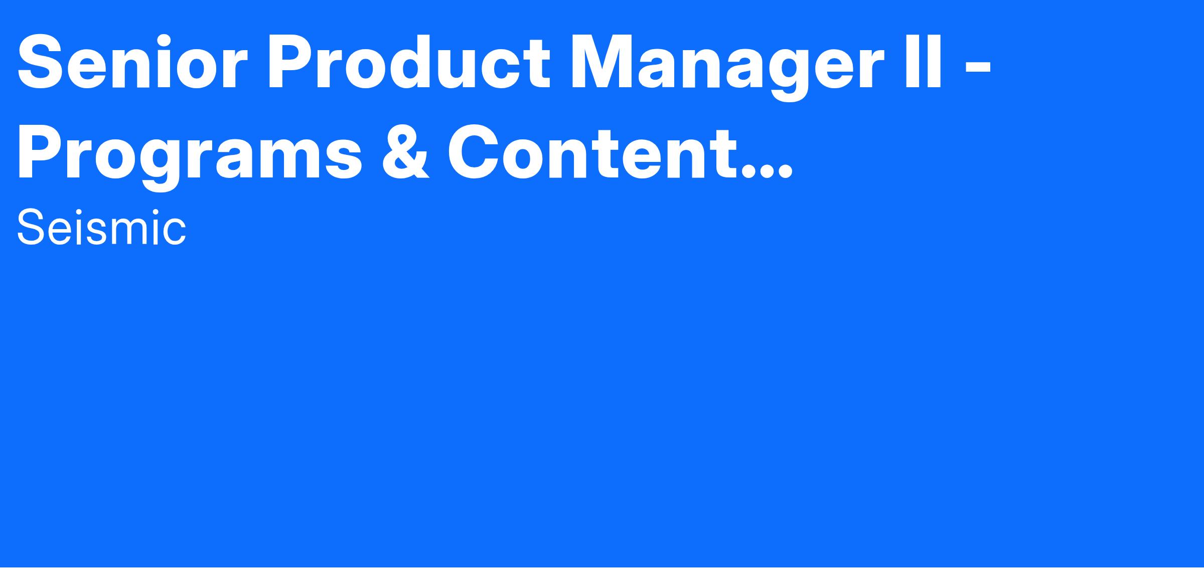 At Seismic, we equip customer-facing teams with intelligent automation, predictive insights, and personalized content—helping them engage clients effectively and drive business growth. As a Product Manager on the Programs and Content team, you will oversee Seismic solutions that support marketers and sales enablement professionals to run effective enablement initiatives and deliver engaging enablement material and experiences. This involves delivering solutions for building compelling and personalized enablement playbooks and other content and leveraging the latest AI trends to help enablers succeed. Collaborating closely with design, you will constantly raise the bar for user experience and deliver solutions that delight our customers. You will also work closely with engineering to ensure that our solution is robust, flexible and scalable for the needs of our customers.