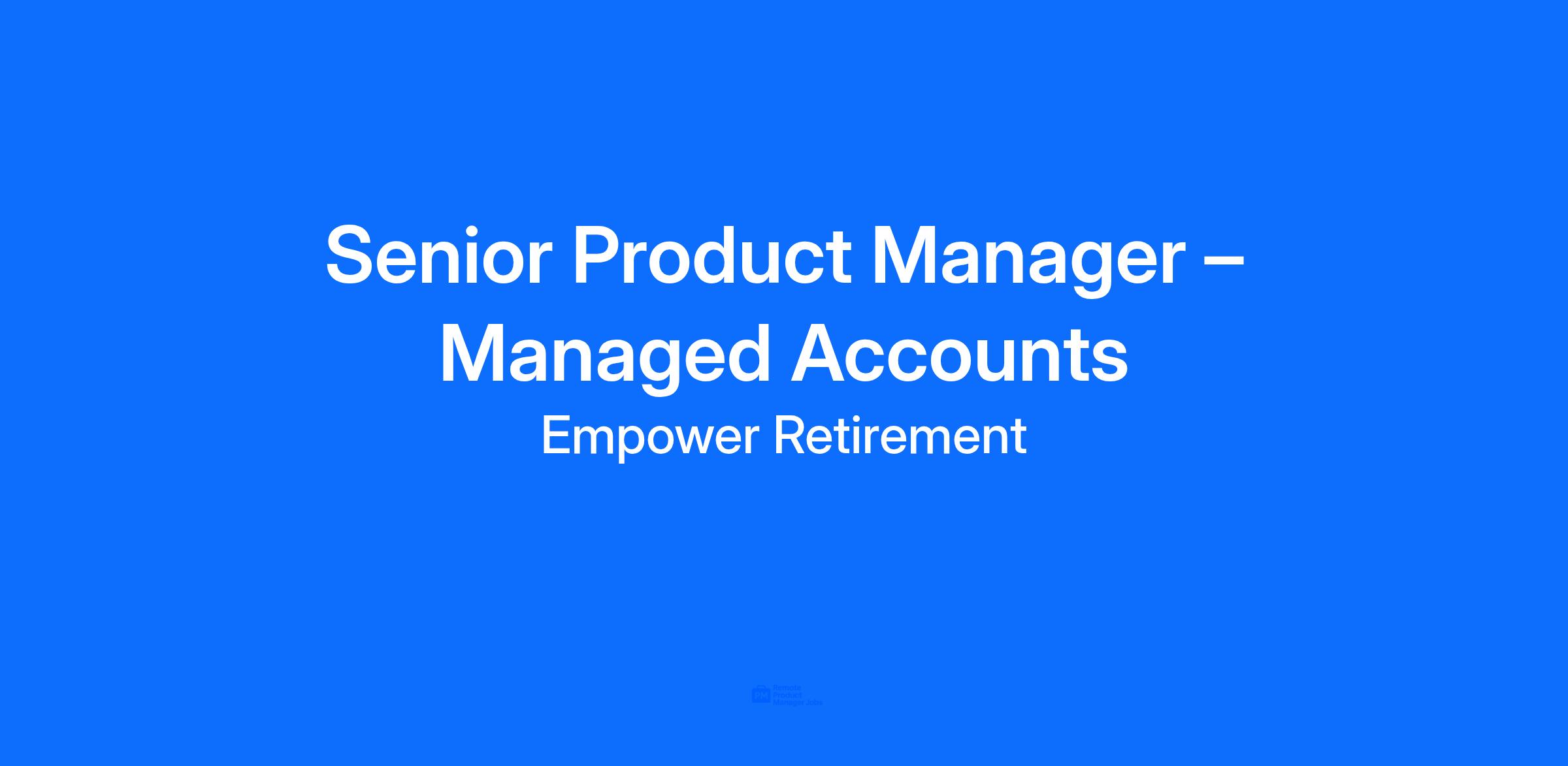 As a Senior Product Manager – Managed Accounts, you’ll play a critical role in shaping and advancing Empower’s managed account solutions. Acting as a strategic product owner, you’ll identify and prioritize initiatives that drive business growth, improve participant outcomes, and create a better managed account experience. You’ll balance forward-looking strategy with day-to-day execution, ensuring that initiatives are innovative, well-implemented, and aligned to business goals.