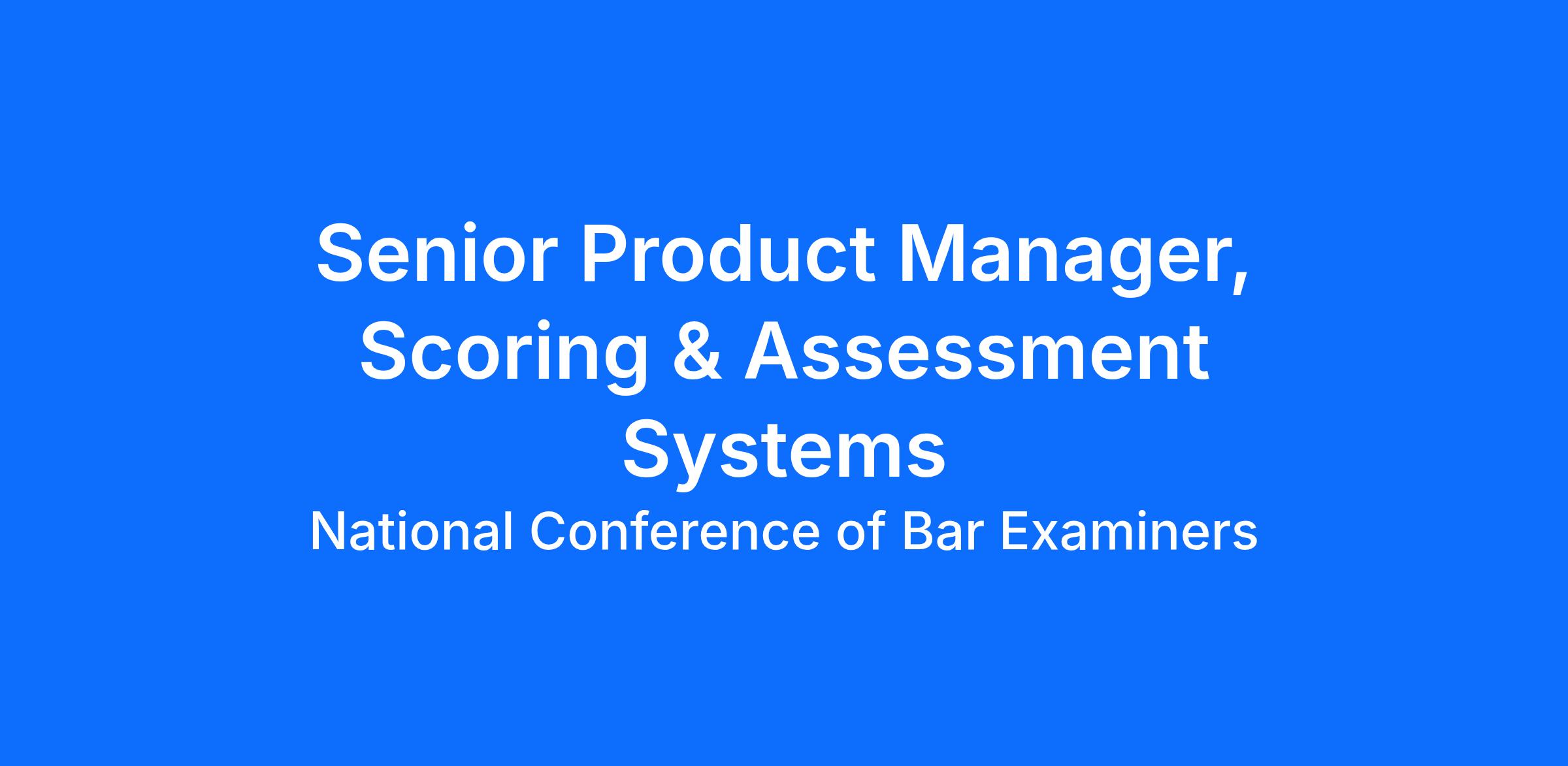 The Senior Product Manager, Scoring & Assessment Systems will own the product strategy, vision, and evolution of scoring across NCBE’s exam products. This is a senior product leadership role with clear decision authority, responsible for defining how scoring works at NCBE: from human grading models to the responsible adoption of automated scoring. The role requires strong product judgment, industry perspective, and strong communication skills to evaluate tradeoffs and make recommendations that shape the future of high-stakes legal licensure assessment.