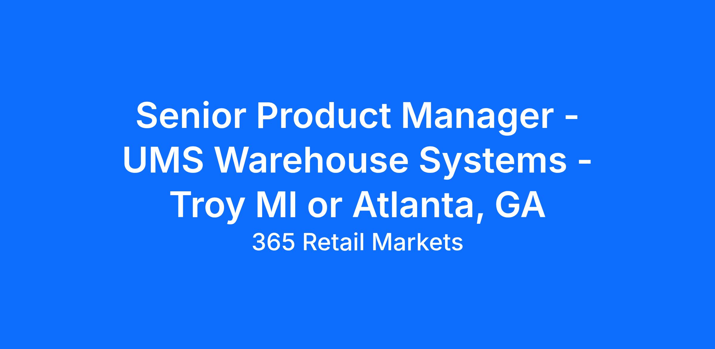 This position is as a member of the Product Department for 365 UMS Warehouse Automation, a 365 Retail Markets company, and reports to the Director of Product. 365 UMS Warehouse Automation specializes in warehouse automation and logistics software solutions, including order picking systems, inventory management, and fulfillment optimization.