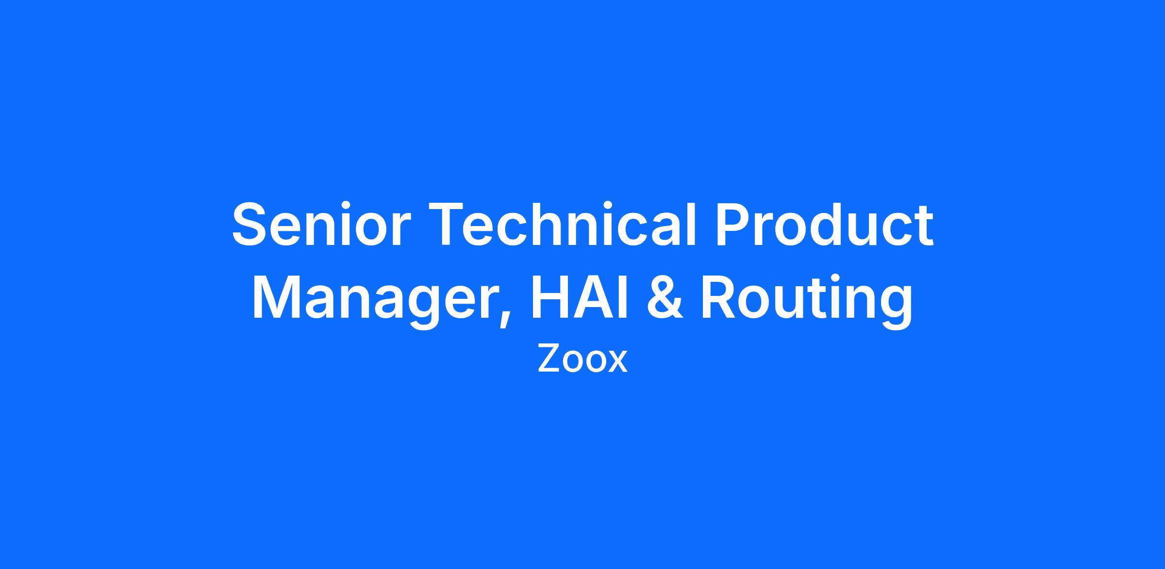 As Zoox is getting ready for commercial service, expanding the areas in which it operates, and facing increasingly complex and richly nuanced day to day scenarios, we’re growing the Human-AI Experience (HAI) team to help build world-class experiences that account for this growth and make the journey from A to B magical for our riders. The HAI team (think: HCI or HMI for an autonomous vehicle) is responsible for crafting the way our robot interacts with the world around it - from riders to other road users to the communities in which we co-exist. To help us in this endeavor, we’re seeking a dynamic Technical Product Manager who will be responsible for driving the vision, strategy, and delivery of features and capabilities for one or more domains within HAI, all to advance our team’s vision of building thoughtful experiences that make the complexities of autonomous vehicles fade into the background for riders and road users alike.