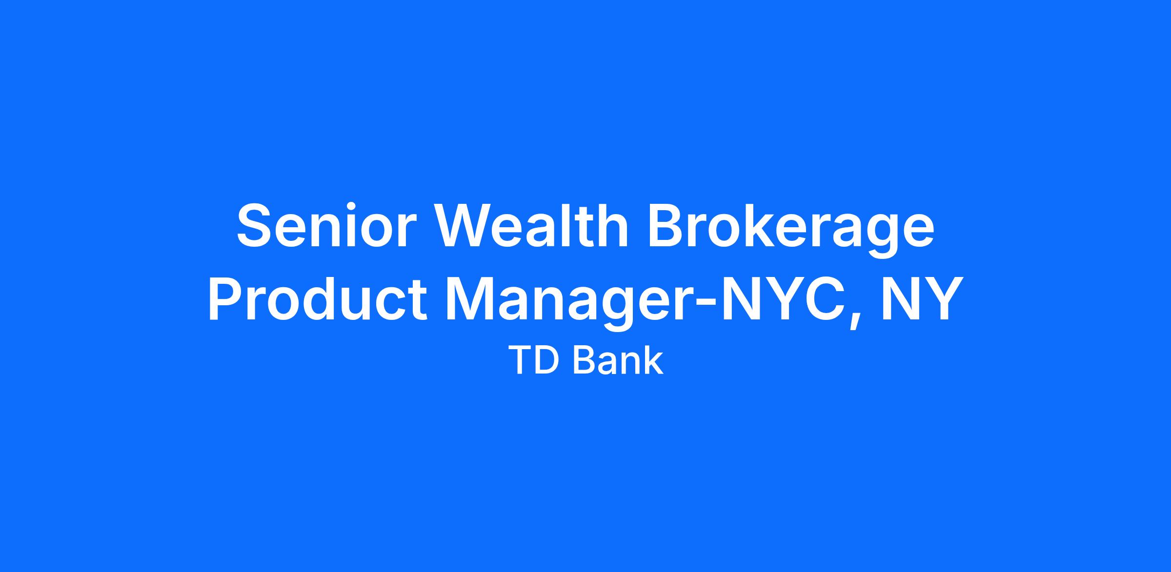 Primary areas of focus include support for a full-service brokerage offering to including but not limited to Fixed Income, Structured Products, ETF, Equity, and Options. The Senior Product Manager will oversee and be responsible for the risk and quality management of TD's transactional platform(s) and solutions.