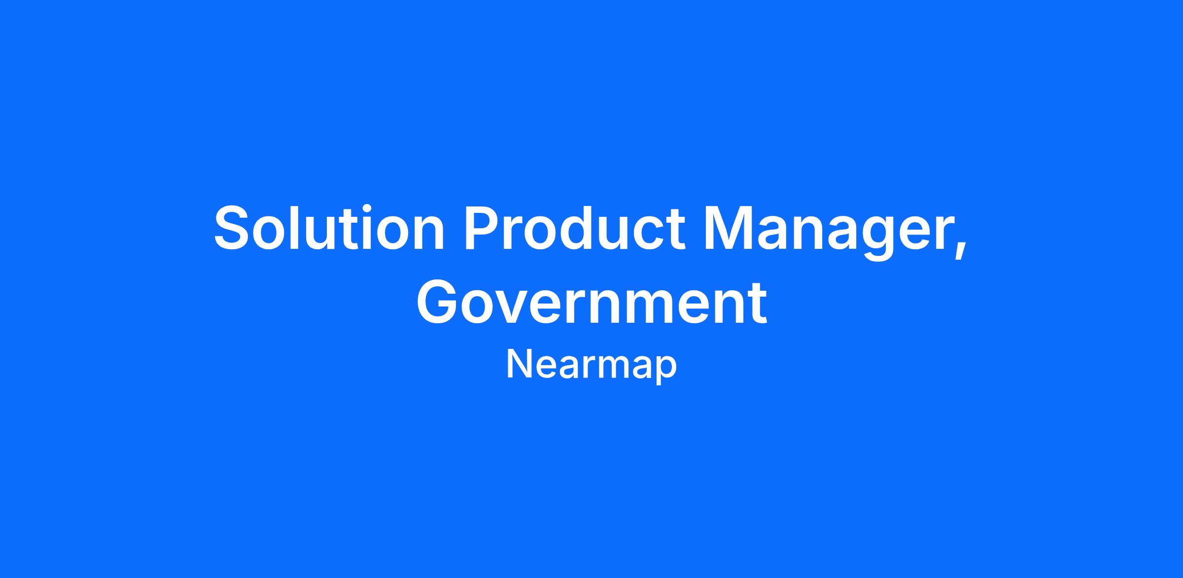 Solutions Product Manager, Government supports the development and growth of Nearmap’s product solutions across Government use cases. This role assists in understanding customer needs, researching market opportunities, monitoring competitors, and helping define product requirements that create value for customers and align with company strategy.