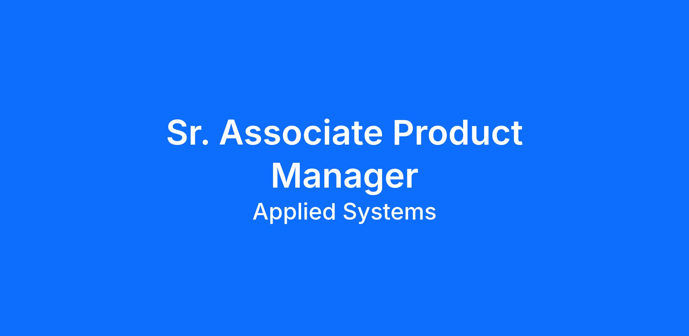 Applied Systems, Inc., a worldwide leader in insurance technology, is currently searching for a Sr. Associate Product Manager (Sr. AMP) to join our Product Management organization and work on the EZLynx Agency Management System. We are looking for a candidate with a proven track record for managing and implementing multiple projects concurrently in a dynamic environment.
