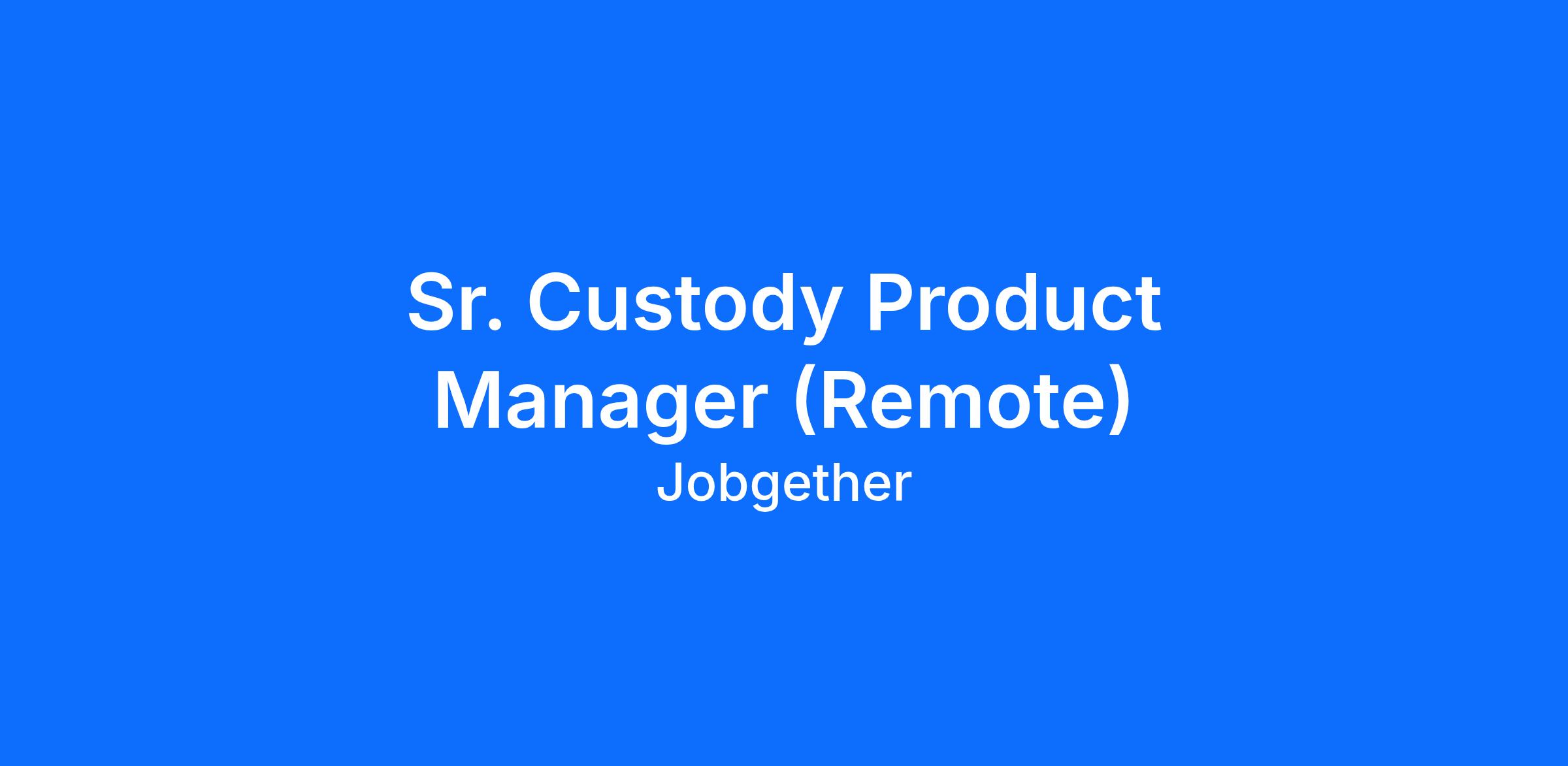 Sr. Custody Product Manager (Remote)