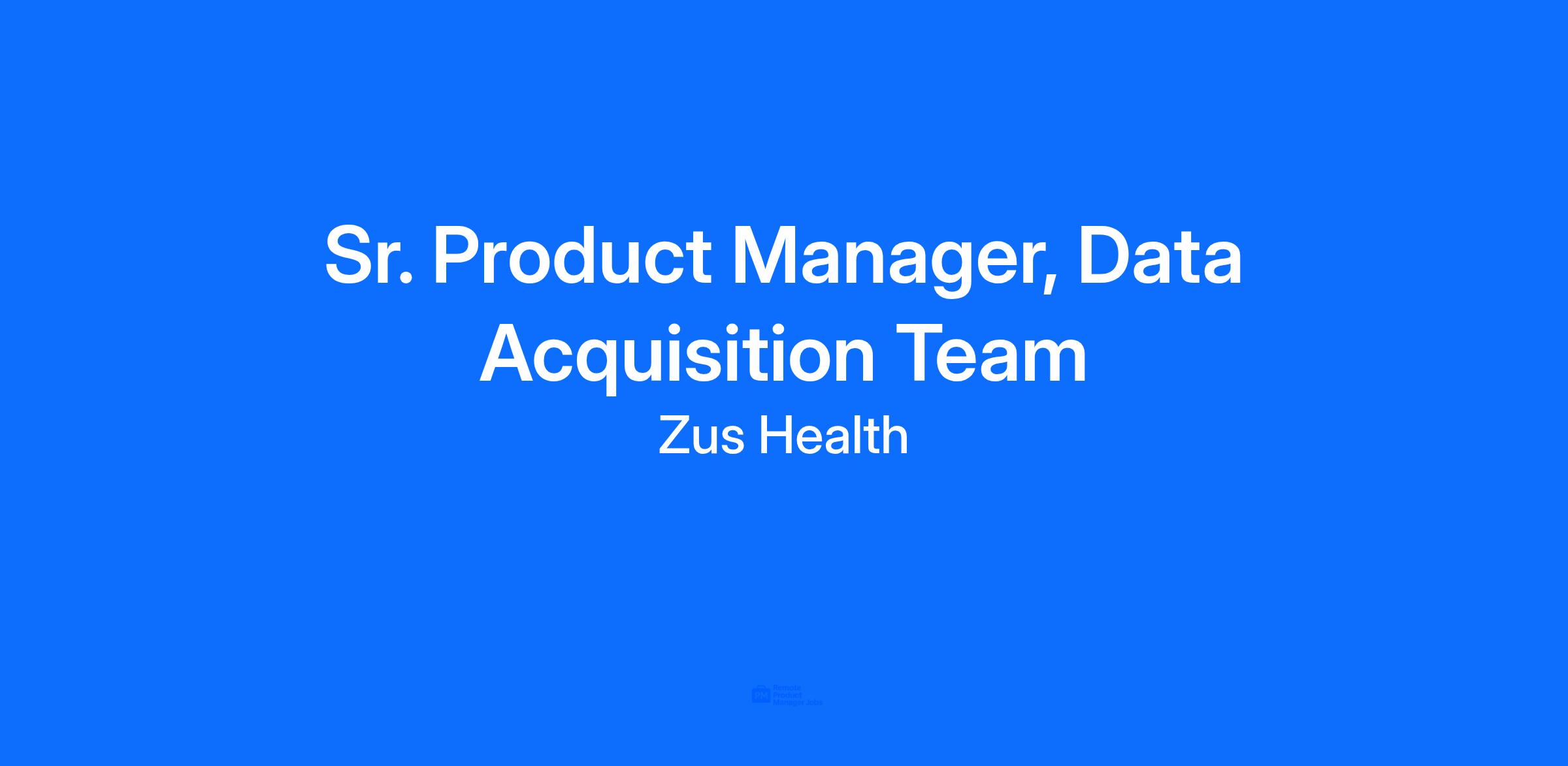 The Data Acquisition team at Zus is looking for a hands-on, technical, and healthcare-savvy Senior Product Manager that is eager to jump into a rapidly scaling healthcare platform startup. This person will be responsible for leading one of our Data Acquisition teams.