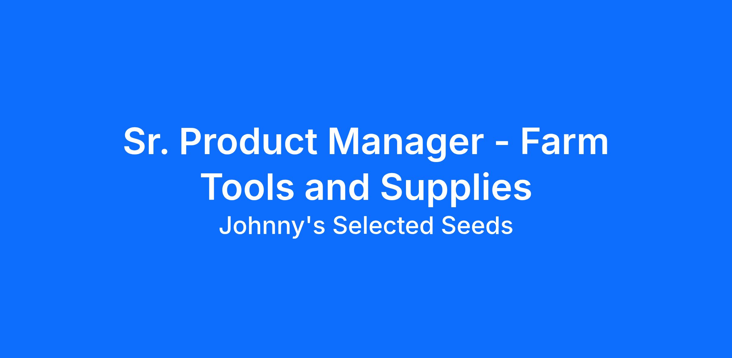 The Senior Product Manager – Tools & Supplies plays a pivotal role in shaping, developing, and optimizing Johnny's agricultural tools and supplies portfolio. This position bridges technical product expertise with business strategy, ensuring Johnny's delivers high-quality, cost-effective, grower-centric tools that support small-scale, organic, and market growers.