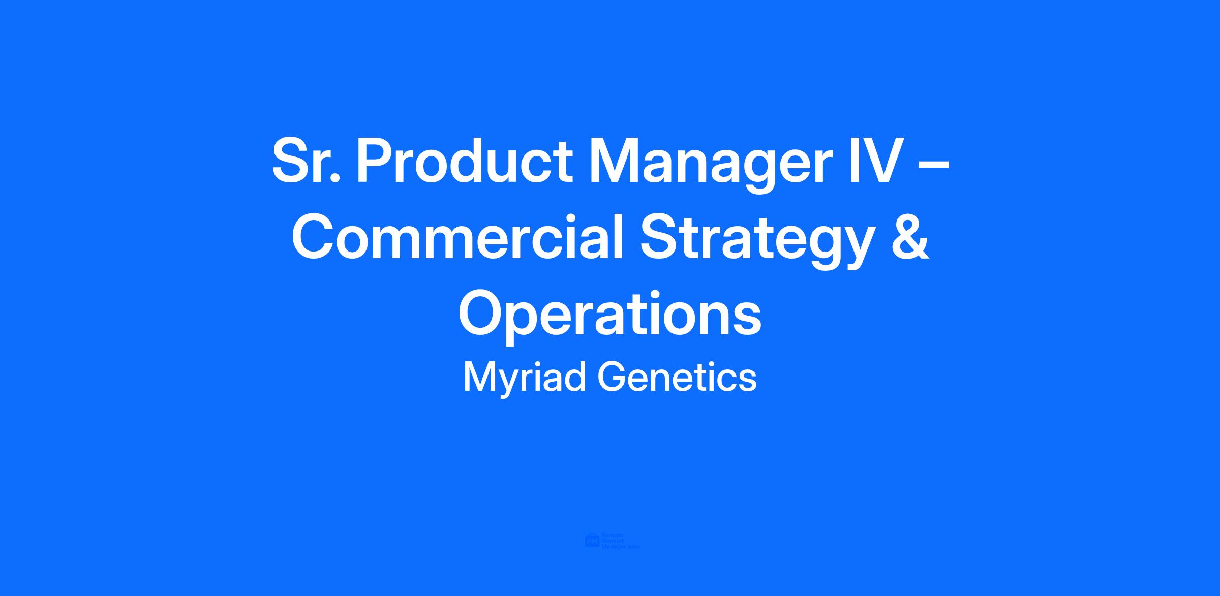 Sr. Product Manager IV – Commercial Strategy & Operations (REMOTE)