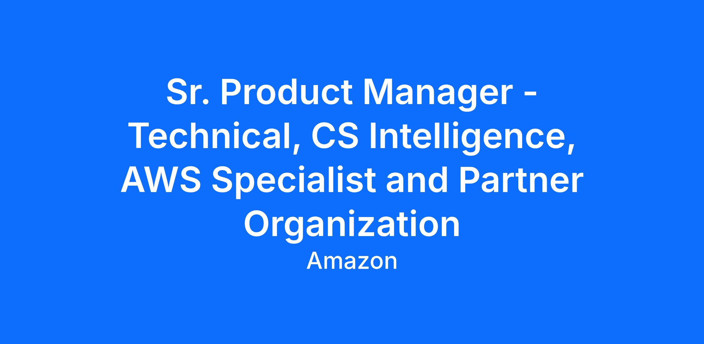 As a Senior Product Manager-Technical on the Customer Success (CS) Intelligence team within the AWS Specialists & Partners (ASP) org, you will architect and drive the development of AWS' next-generation CS intelligence stack and AI-powered agents. This dual mandate encompasses building a unified data foundation that enables real-time visibility into AWS service usage and customer value realization, while pioneering autonomous CS agents that proactively drive adoption and business outcomes for customers. You will transform AWS' post-launch customer journey through intelligent automation, predictive insights, and scalable agent-led workflows that set new standards for enterprise customer success.