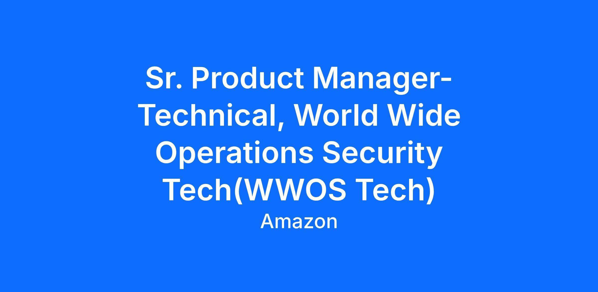 As part of WWOS Tech, we build exciting software technology products that help with security and loss prevention for Amazon operations. We are specifically looking for a passionate, results-oriented, and inventive Sr Product Manager - Technical to drive products that focus on minimizing operational disruption and reducing Shrink losses (e.g. Theft and Fraud) in our network as well as due to external actors.
