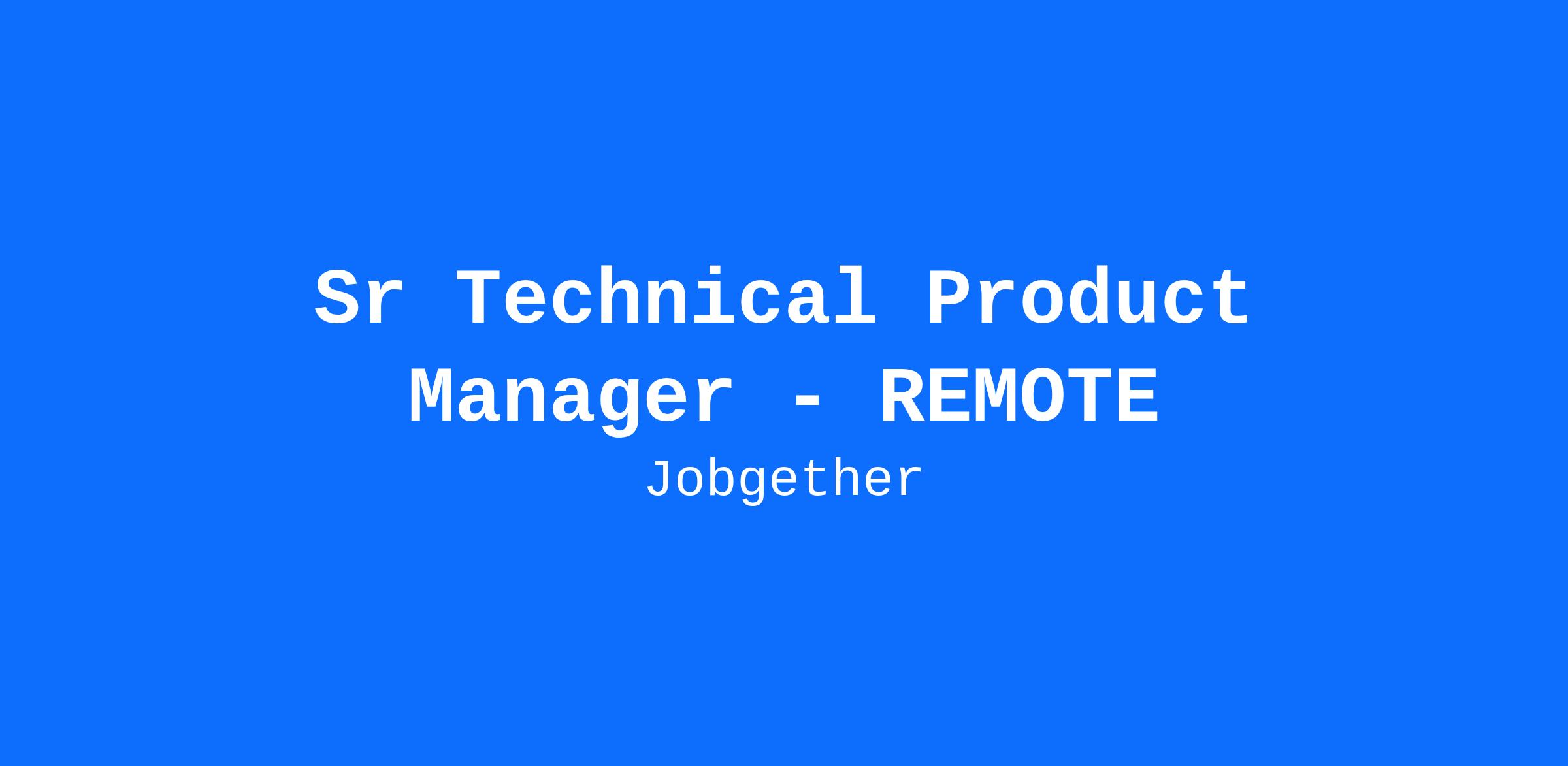 Sr Technical Product Manager - REMOTE