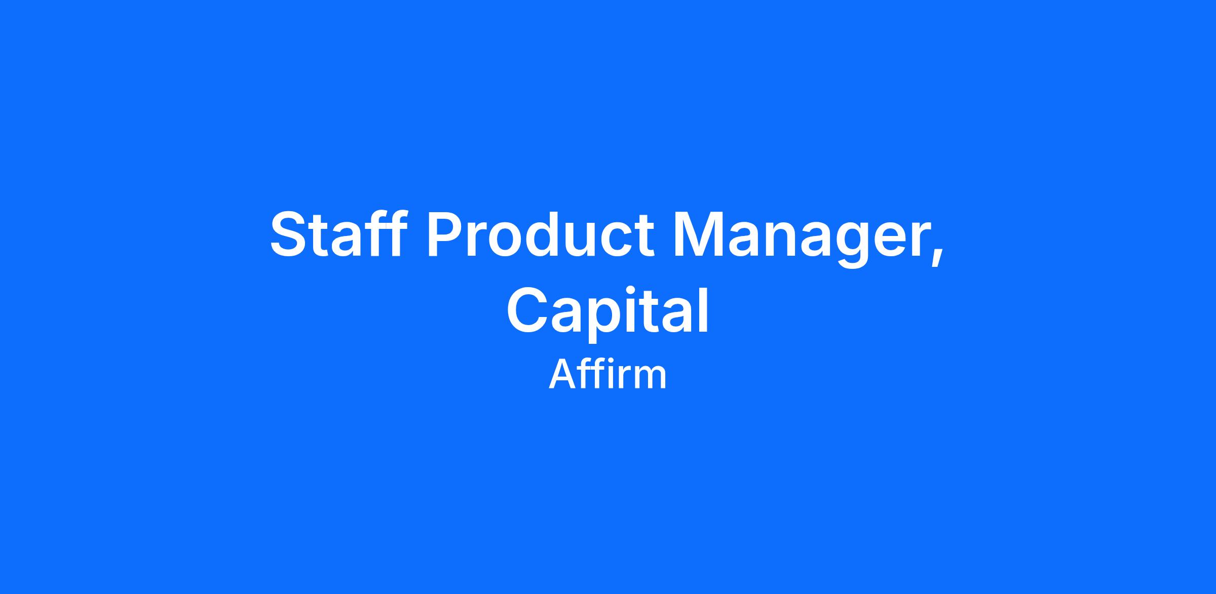 We’re looking for a Staff Product Manager to lead our Capital Risk and Deal Reporting product area. This role owns some of the most investor-visible and profit-impacting systems at Affirm. You will reduce operational risk, enable more sophisticated and accurate forecasting, and ensure investor-grade reporting by building durable systems that scale with Affirm’s growth—ultimately helping Affirm deploy capital more efficiently and passing those gains through to our customers.Â