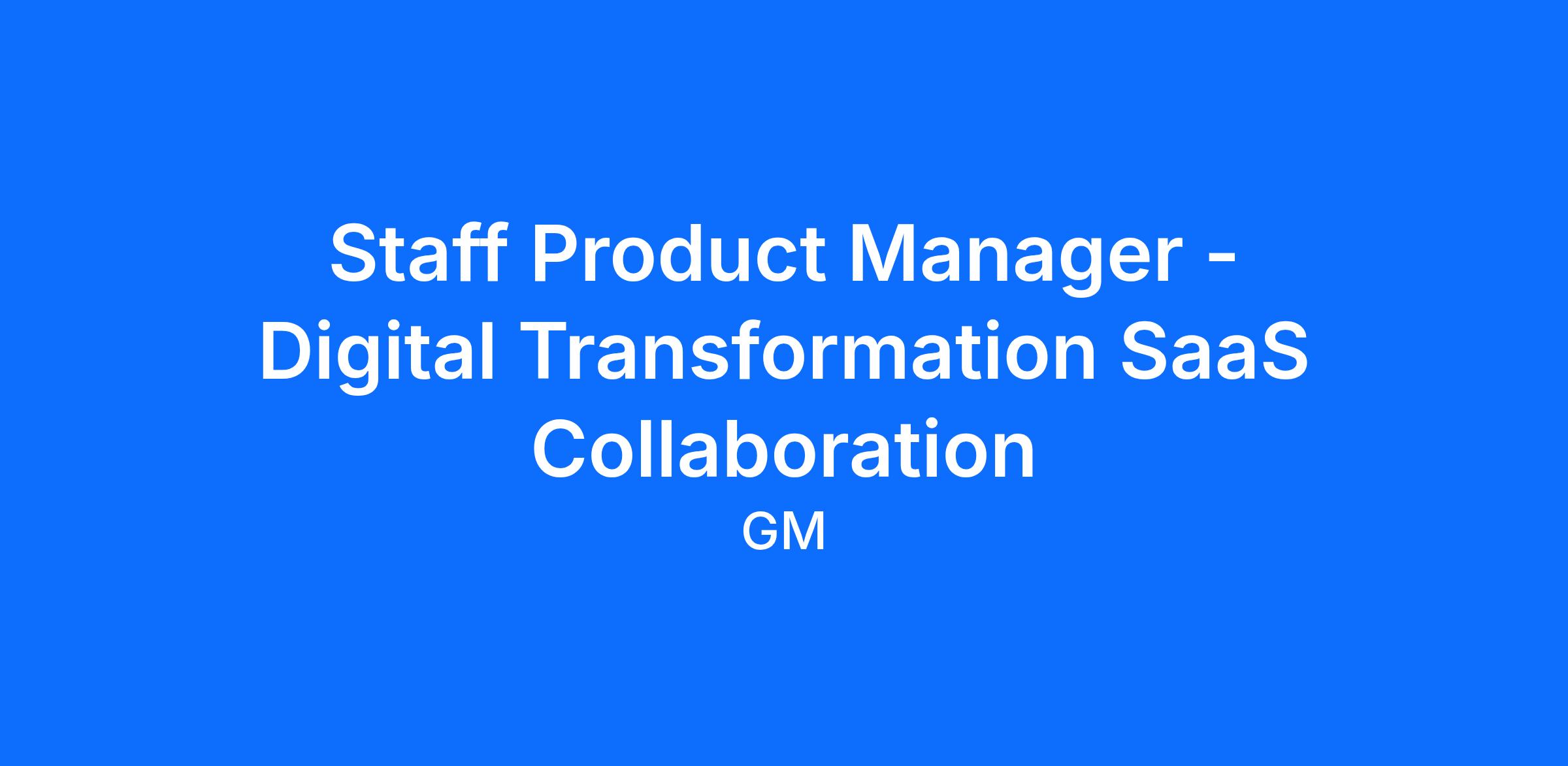 The SaaS Collaboration Engineering Team within GM’s Core IT organization is looking for a Staff level Product Manager. Responsible for managing a distinct set of IT tools focused on Enterprise Collaboration Tools.