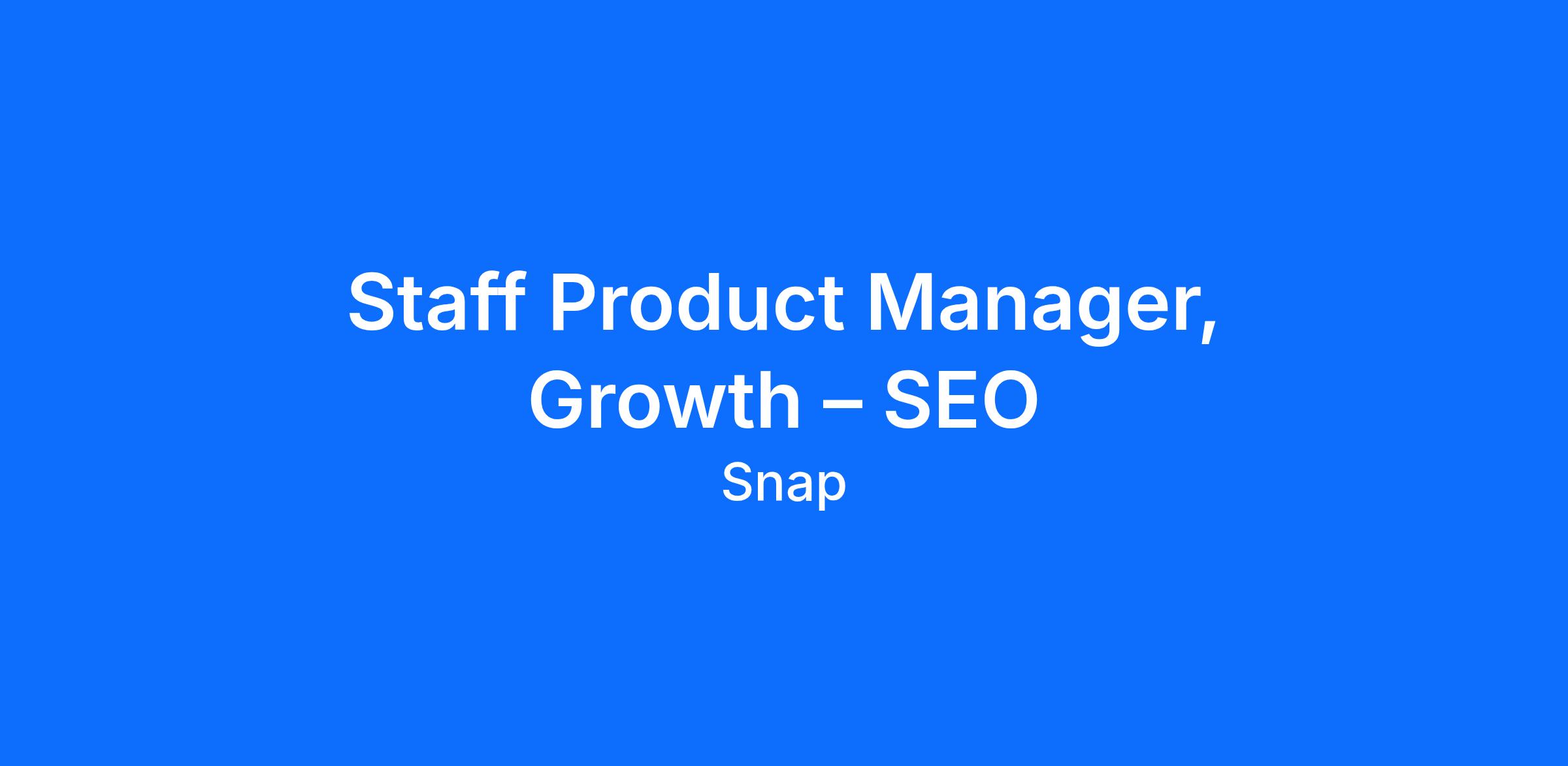 We’re looking for a Staff Product Manager, Growth – SEO to join our Product team at Snap Inc.!