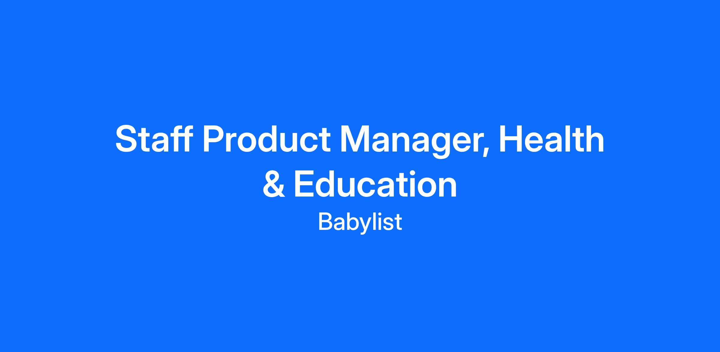 As the Staff Product Manager, Health & Education, you’ll lead the end-to-end experience of how Babylist provides guidance to users and how users discover and access valuable offerings including breast pumps, webinars, and 1-1 consultations. You will drive adoption of the rapidly growing Babylist Health business, while also leading the transformation of our in-app guidance from long-form written guides to more dynamic, multi-modal, video-forward content.