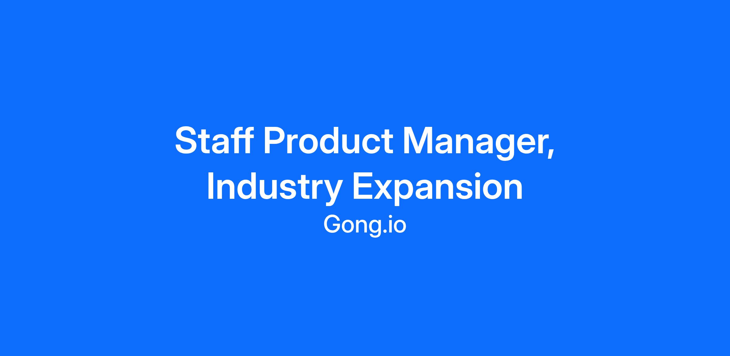 Join our team as a Staff Product Manager for Industry Expansion, driving Gong forward through bringing Revenue AI to a wider set of industries. In this strategic role, you'll work with our industry expansion customers and go-to-market team to accelerate revenue: unblocking new logo acquisition, increasing product stickiness, and setting a foundation for significant company growth. You'll serve as the crucial link between our customers' industry-specific needs and our product development teams, aligning our roadmap and directly executing on high-priority features. This is a high-visibility position requiring significant customer interaction, strategic thinking, and the ability to drive results across multiple stakeholders.
