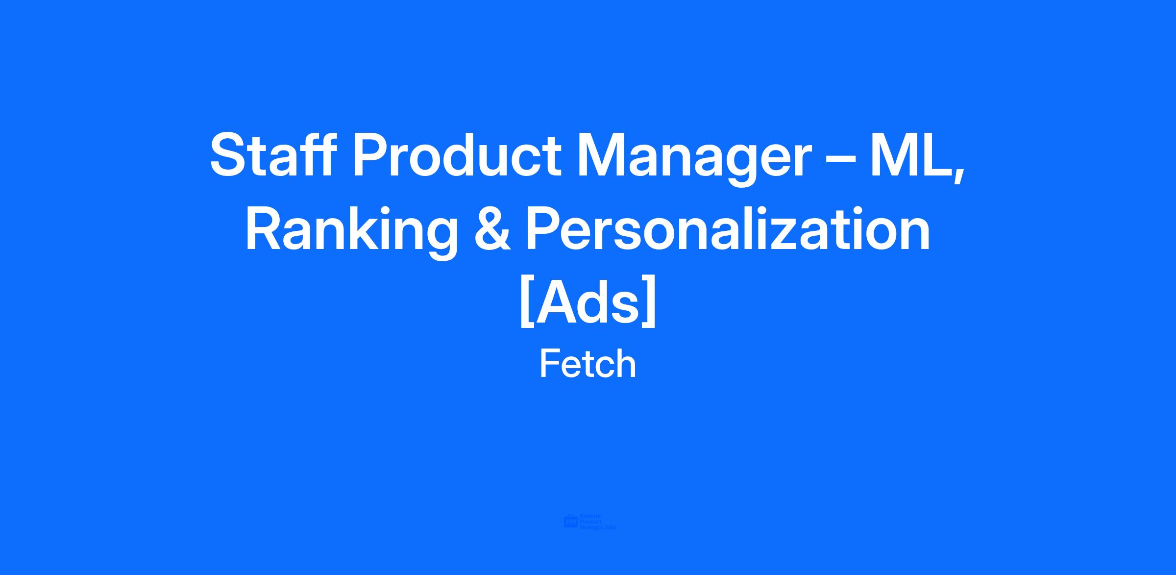 We’re looking for a Staff Product Manager, Ads Ranking & Personalization to define and lead the ML-driven ranking, targeting, and personalization systems that power Fetch’s ads business. In this deeply technical role, you’ll own the strategy and roadmap for how we match users to the most relevant ads and offers, optimizing for user experience, advertiser outcomes, and marketplace health.
