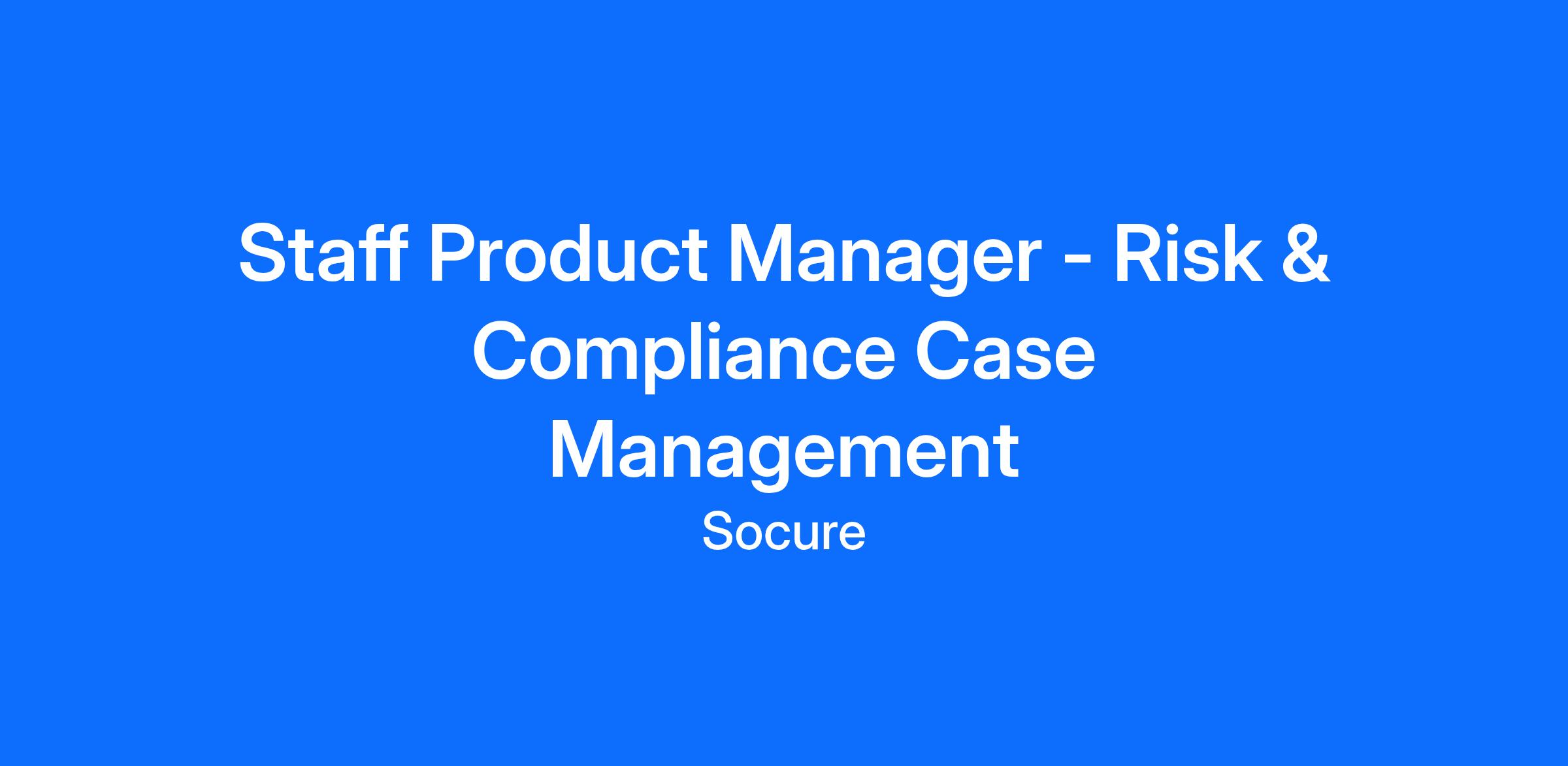 Socure is seeking a Staff Product Manager, Risk & Compliance Case Management to lead the next phase of Socure’s RiskOS Case Management experience. This role will elevate our existing case management foundation into a scalable, best-in-class experience, consolidating and unifying workflows and UI patterns across multiple product lines and customer use cases.