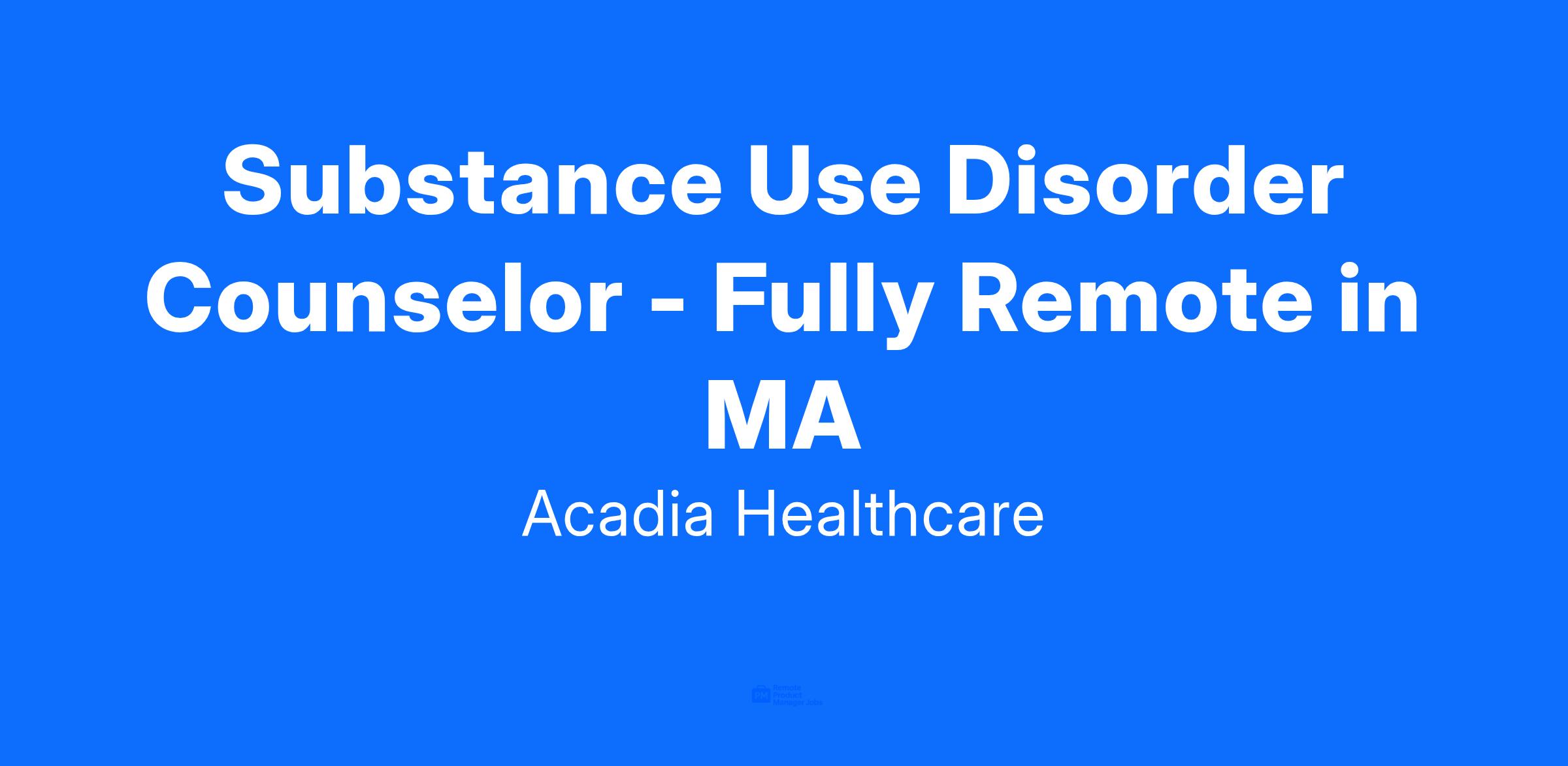 Licensed Substance Use Disorder Counselor - Fully Remote (Massachusetts & Rhode Island)