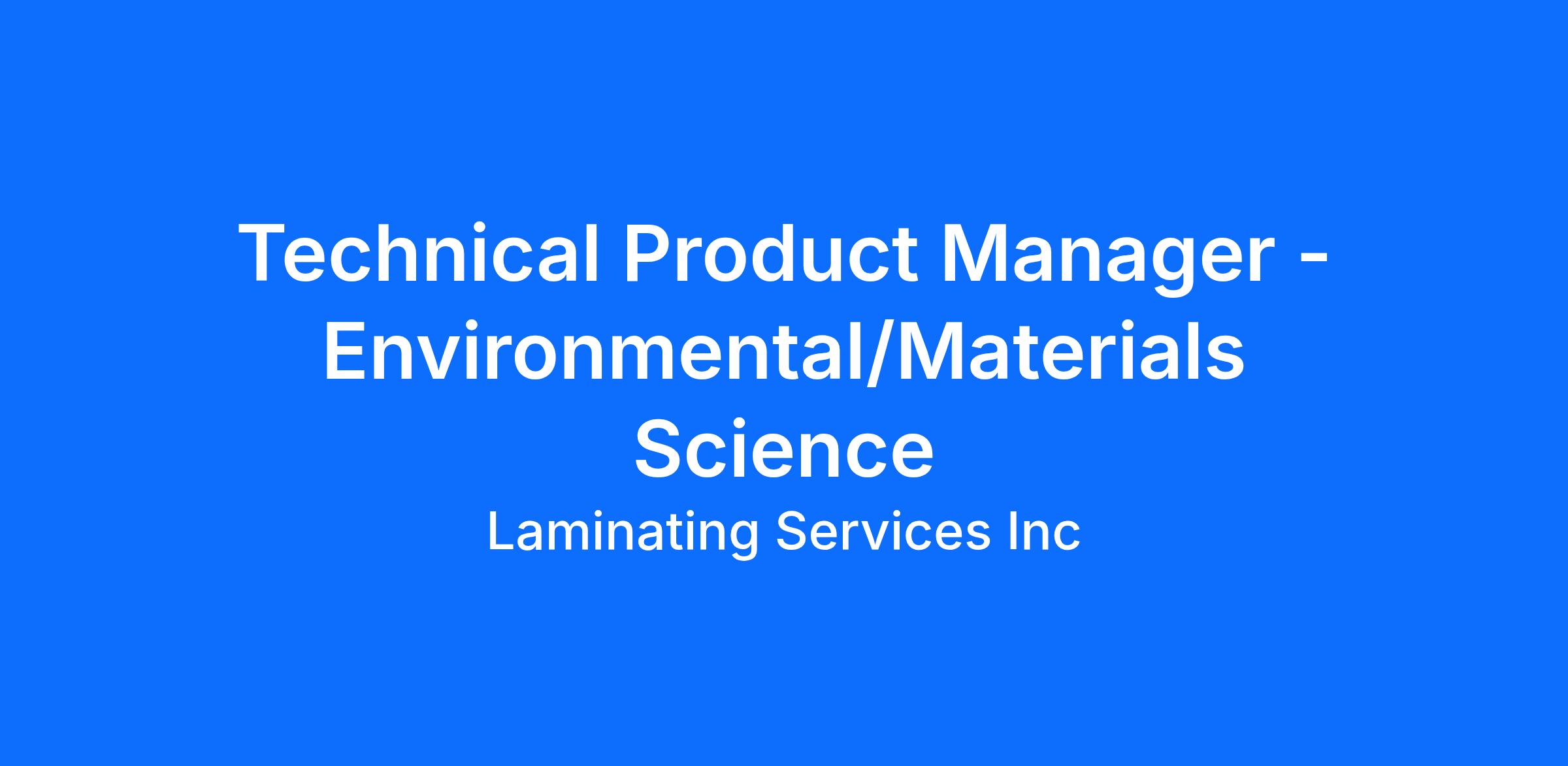 - Experience with materials science including polymer films or natural substrates, coatings, adhesives and inks required.