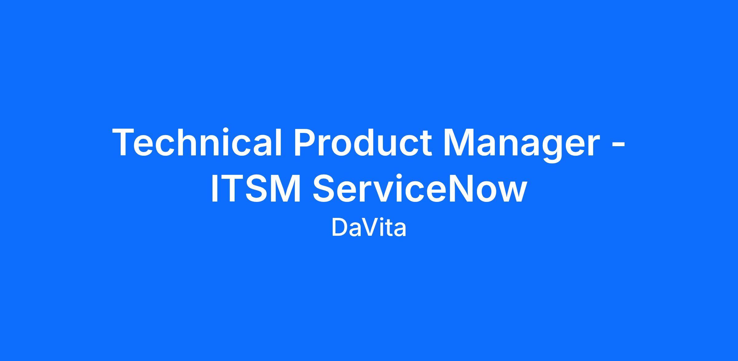04/14/2026 2000 16th Street, Denver, Colorado, 80202, United States of AmericaTechnical Product Manager (TPM) – ITSM ServiceNow