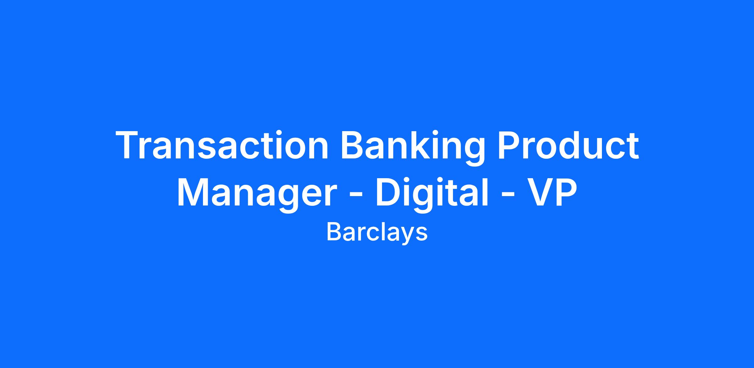To be successful as a Transaction Banking Product Manager - Digital - VP, you should have: